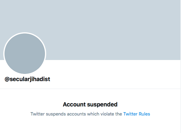 Dear @TwitterSupport, How is it that Richard Spencer still has a live Twitter account, but @SecularJihadist — a leading platform for secular liberals & human rights activists in the Muslim world — is suspended? Please reconsider your decision and restore our account.pic.twitter.com/WmLTJTn29u