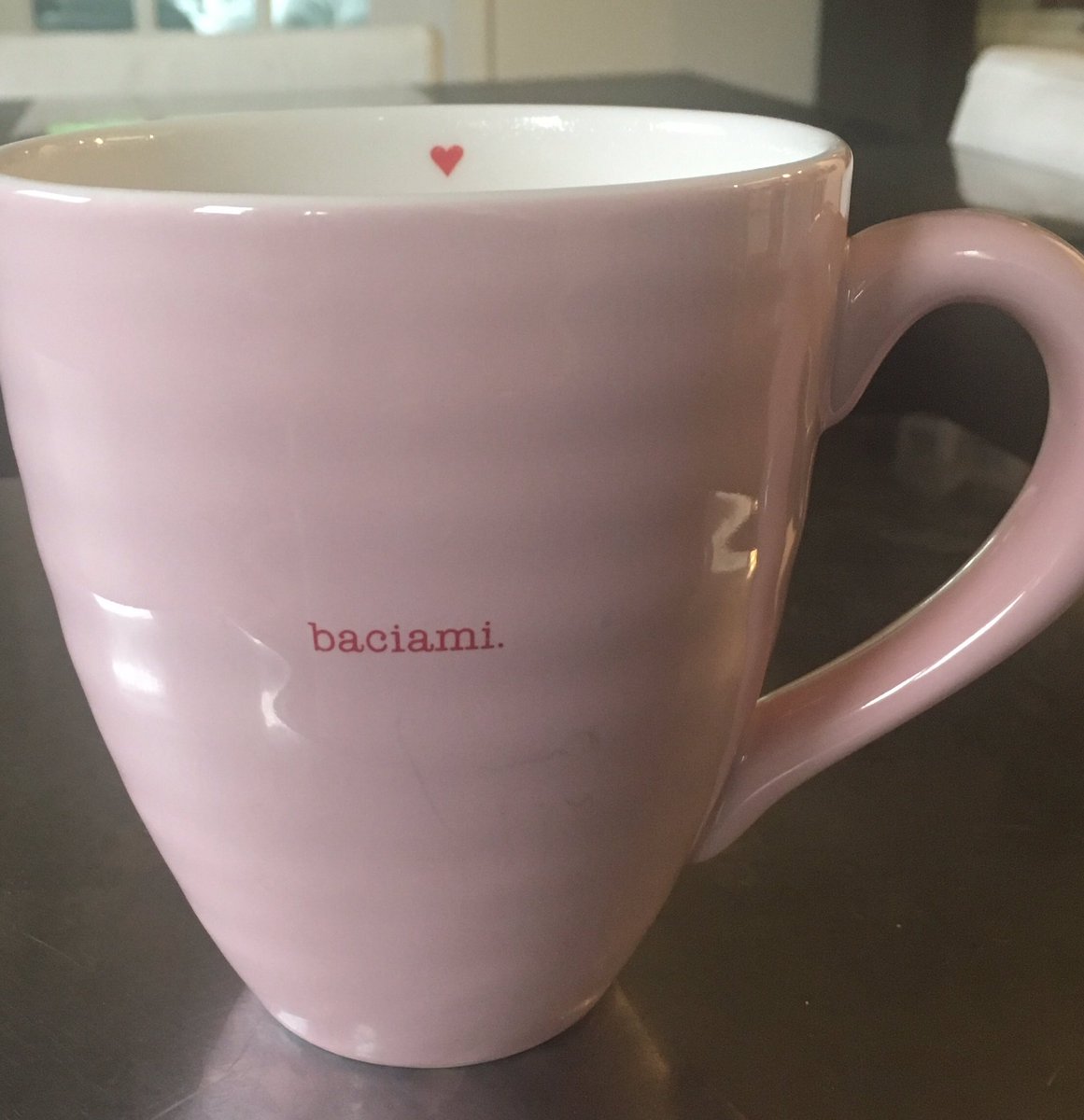It means 'kiss me'. It's Italian.