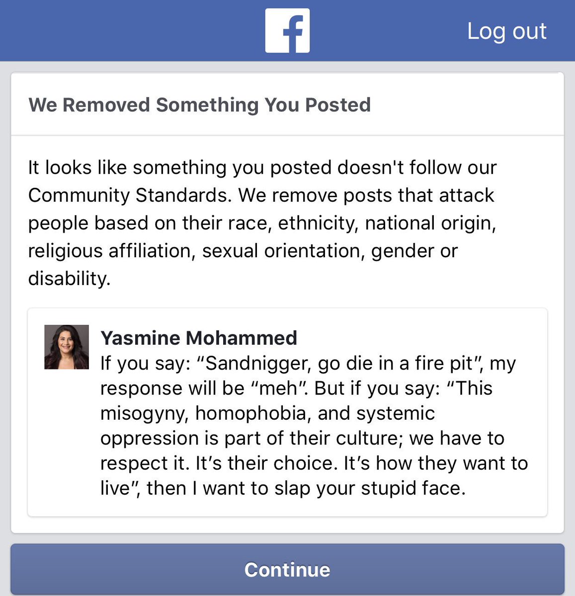 facebook few days ago removed my comment and blocked me for 3 days consecutively twice for that one post but they never remove derogatory comments against Christians , Buddhist or Hindus . They're liberal pseudo-seculars.