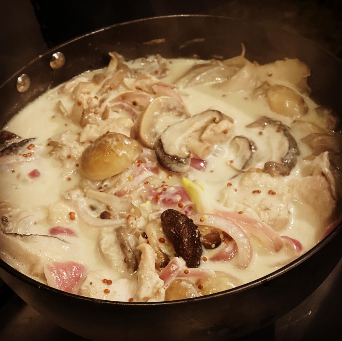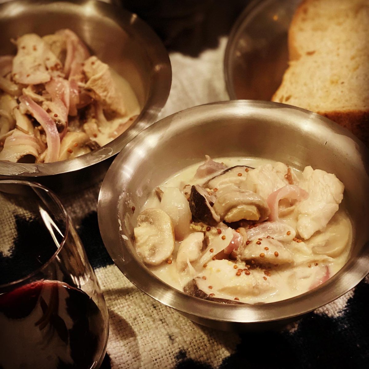 本日のメインディッシュは、クリーミーマスタードチキン。マスタードの酸味が効いた一品。Jamie Oliverのレシピから。今夜の料理はすべて妻任せ。美味い!