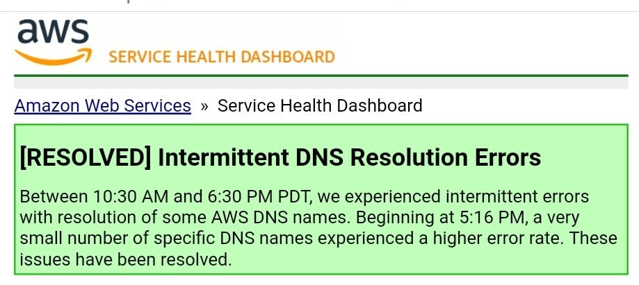 #DDoS sur les serveurs DNS de#AWS hier soir