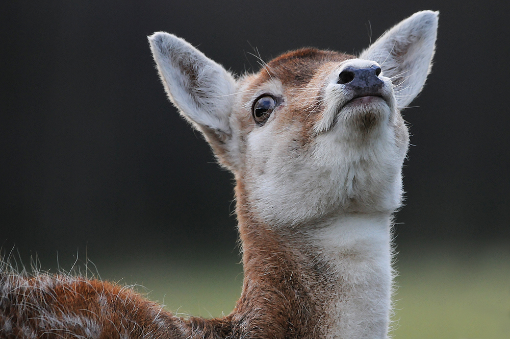 Never seen this before. A young fallow pricket challenging a fully grown red deer stag to a play fight.