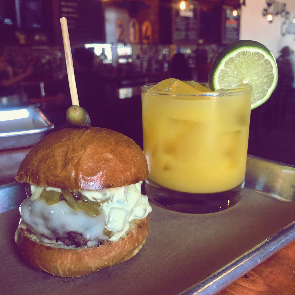 @EasySliderTX Happy Hour from 3-7 PM... ...but here's tonight's Serrano Chile Cheeseburger and Mango Habanero Margarita instead.
