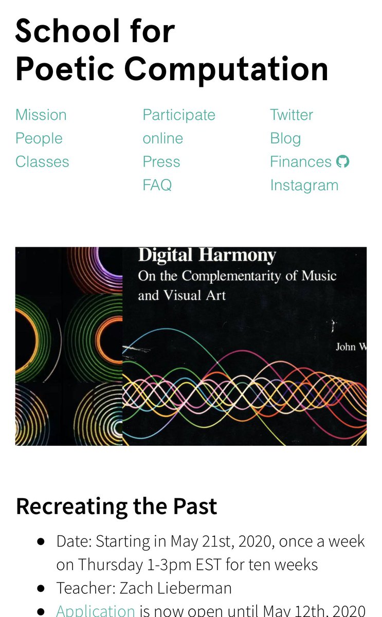 @sfpc I’ll teach w@maxbittker where we’ll learn creative coding by studying artists of the past and recreating their work — https://sfpc.io/recreatingthepast-spring2020/ …pic.twitter.com/GmWsZJiaVw