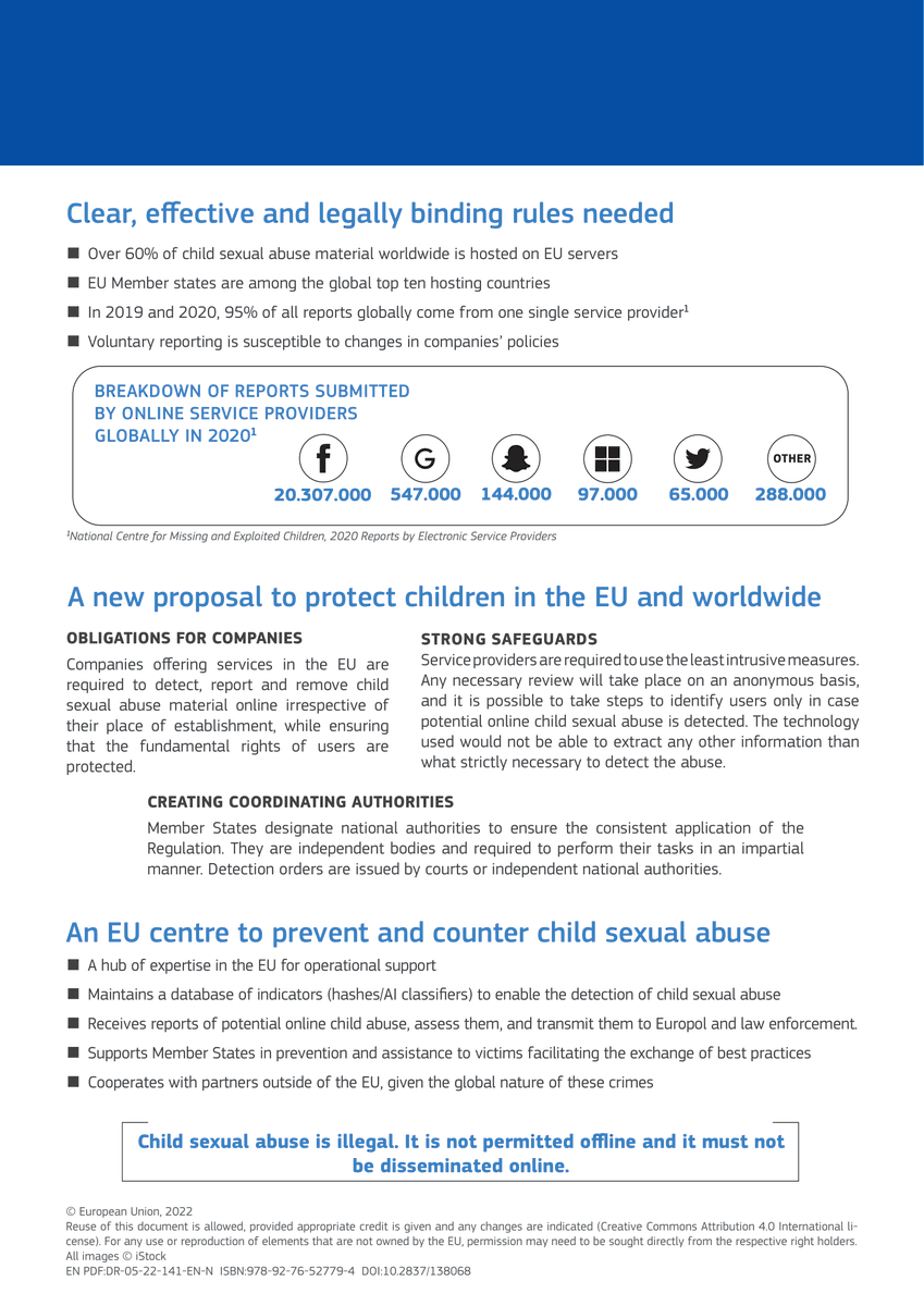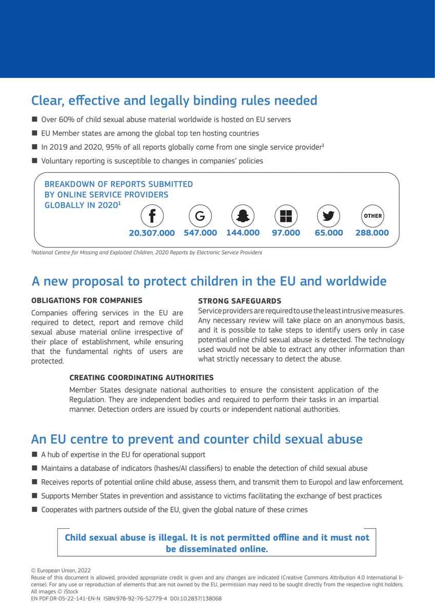 #childsexualabuse already exists. The@EU_Commission's draft legislation will make it mandatory for online service providers & hosts to detect#childsexualabuse material and report it to the new