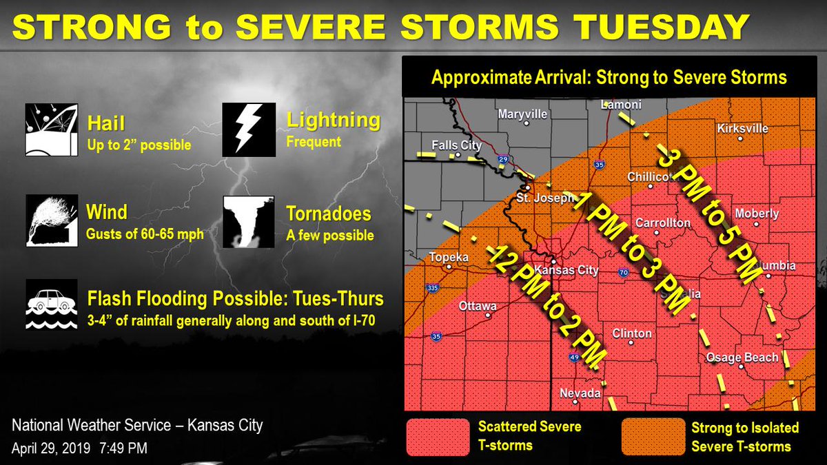 Strong to severe storms expected to begin moving into the area by late morning and/or early afternoon with the severe threat working east with time. There could be some t-storm activity during the morning, but greatest threat will be focused on the afternoon hours.pic.twitter.com/VtGk4Qh2VP