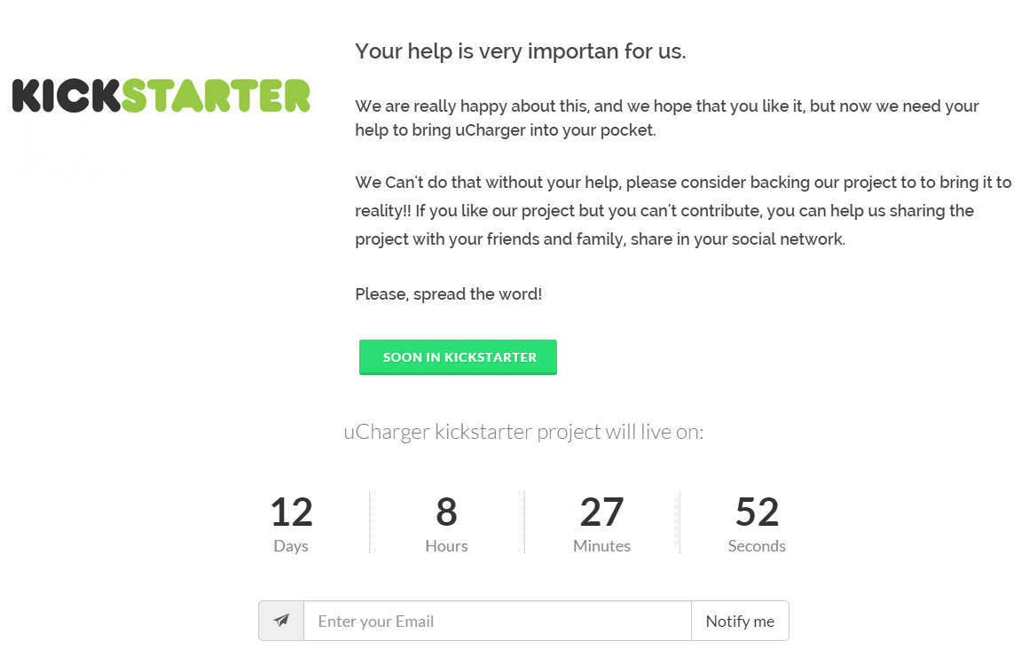 #Kickstarter , We can notify you! just go to http://uCharger.co pic.twitter.com/Tw7UpZQM8u