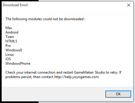 @YoYoGames Any news on the GM:S Updater? Patch 1.4.1657 dropped with the sale. Updater keeps looping this error...pic.twitter.com/oUKFjTOEjc