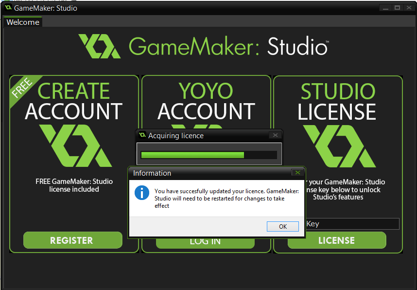 @YoYoGames Code from Humble. Done account & redeem. Now login (and restart) or close GM. Can't skip this window.pic.twitter.com/zwSA6NO7ZW