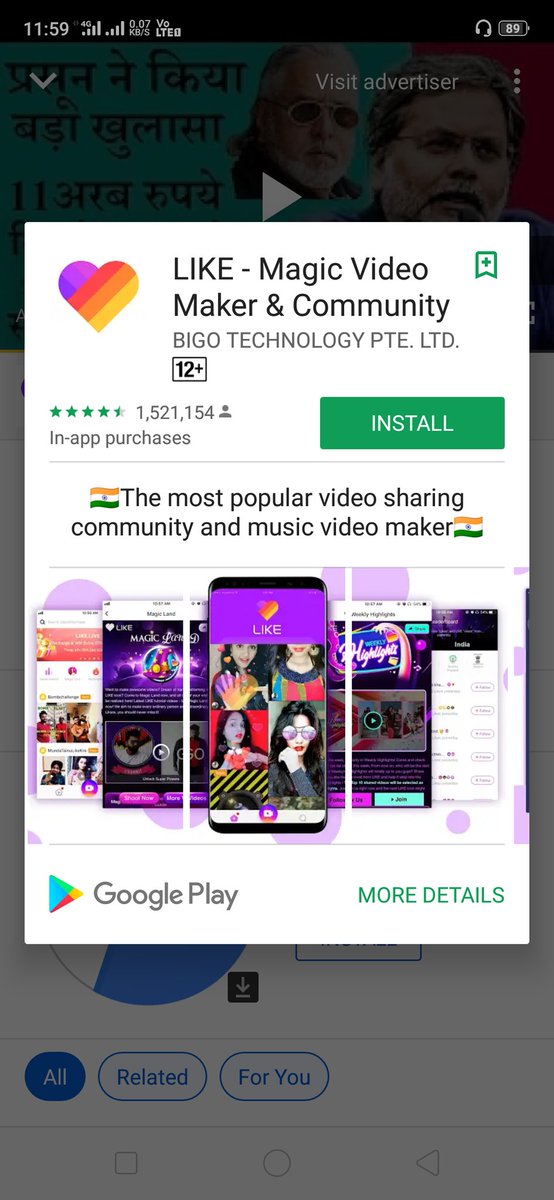 @TeamYouTube the 'LIKE - Magic Video Maker & Community is showing lewd language ads in @YouTube Please stop screening such cheap, derogatory advertisementspic.twitter.com/HnAVsQDD0x