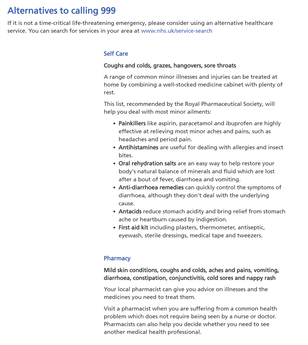 We're here if you need us, but please consider other NHS options if you do not need life-saving help. • Self care • Pharmacy • GP • 111 Online • Walk-in centre, minor injuries unit or urgent care centre For information on each service, visit - http://ow.ly/yT0n50GA5mv pic.twitter.com/sDwTEpQNMT