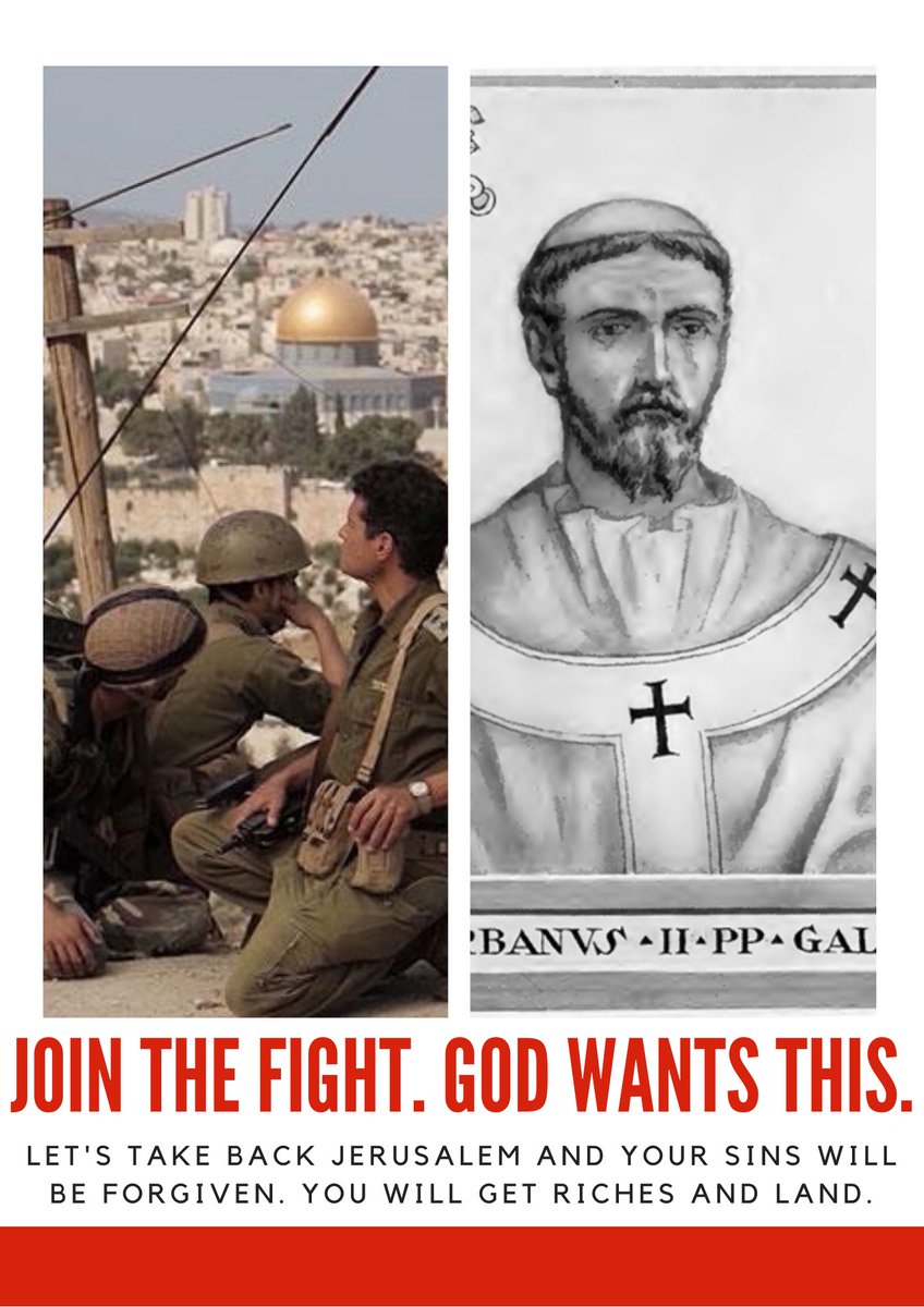 Yeah, this is really inappropriate to have in the curriculum. Comparing modern Israelis to Crusaders isn't even slightly accurate.