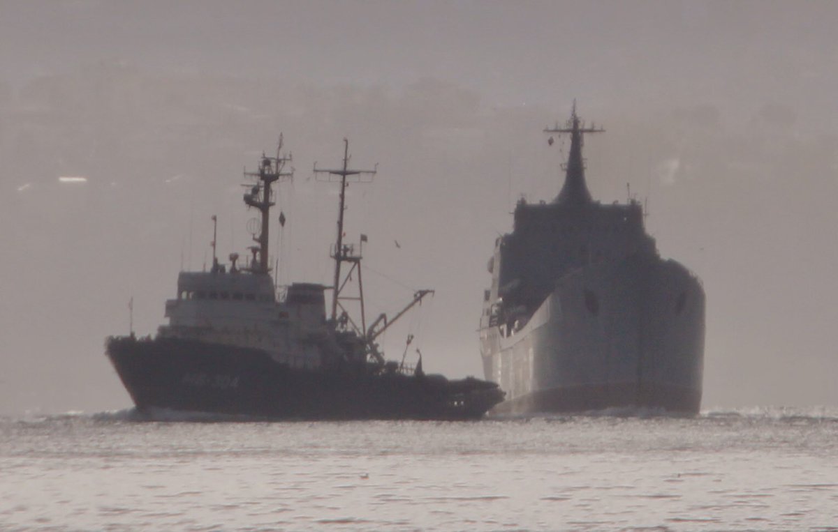 Back from Tartus #Syria but broken down⚠️Engine failure: #ВМФ Project 745 BSF #ЧФ 145th Resue Ship Squad/1st group’s Sorum class rescue tug MB304 towed #ВМФ Project 1171 #ЧФ BSF 197th Assault Ship Brigade’s Tapir (NATO:Alligator) class LST Orsk through Bosphorus towards BlackSeapic.twitter.com/HTu6EeVDgt