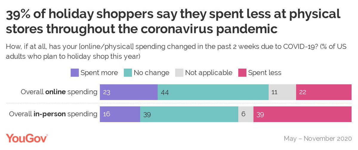 #COVID19 pandemic. 23% say their overall online spending has increased due to the pandemic. https://today.yougov.com/topics/media/articles-reports/2020/11/19/despite-budgets-americans-holiday-shopping?utm_source=twitter&utm_medium=website_article&utm_campaign=holiday_shopping_despite_budgets …pic.twitter.com/Yk35CKpiLT