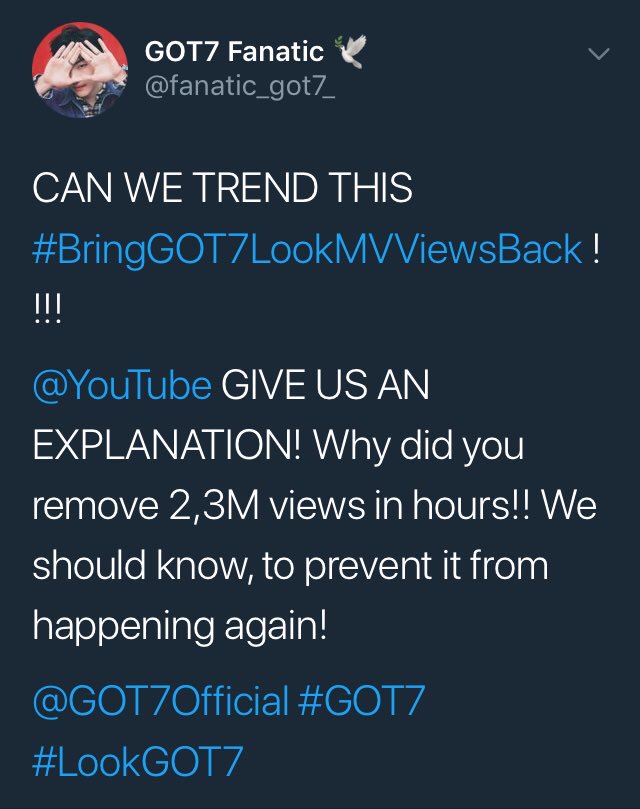 @YouTube @TeamYouTube #BringGOT7LookMVViewsBack #LookGOT7 #GOT7pic.twitter.com/kKoImCeeFG