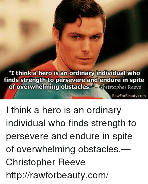 I think a hero is an ordinary individual who finds strength to persevere and endure in spite of overwhelming obstacles. ~ Christopher Reeve