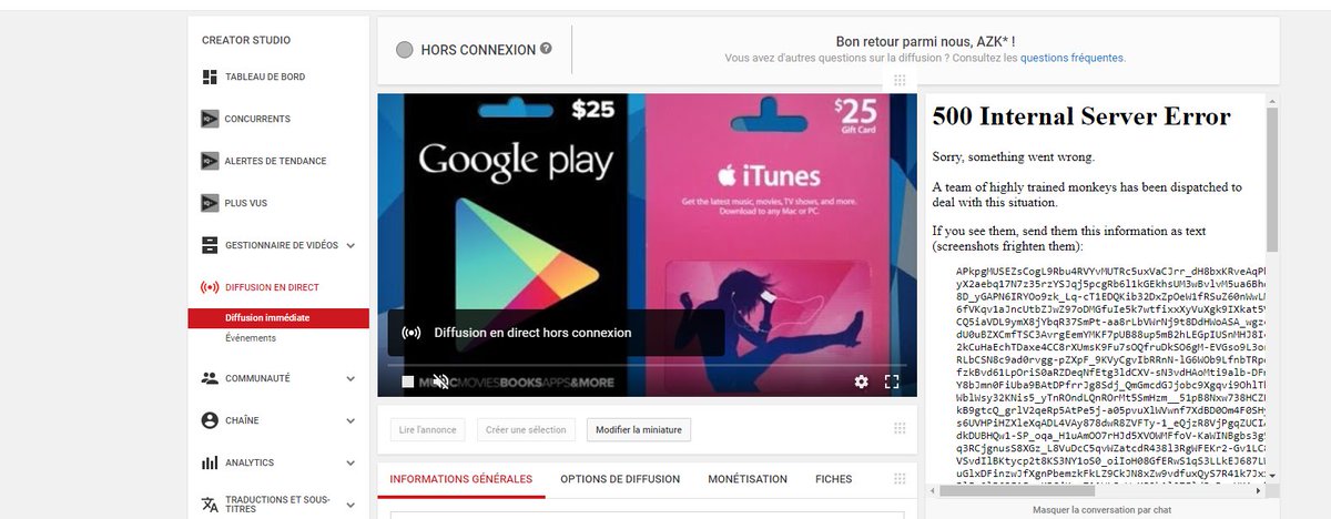 quand je veux live sa me met ca en gros j'ai plus de tchat changé sa de suite svp @TeamYouTube @YouTube ma chaine https://www.youtube.com/channel/UCvYRtSwOOoJftba3jl8qKOA …pic.twitter.com/B60FaX543g