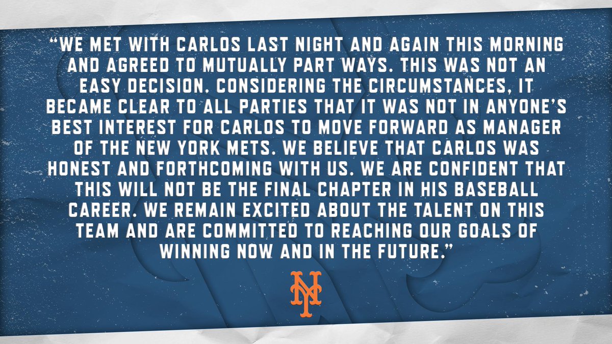 The Mets' statement on Carlos Beltran stepping down as manager:pic.twitter.com/RaDPlFRZtf
