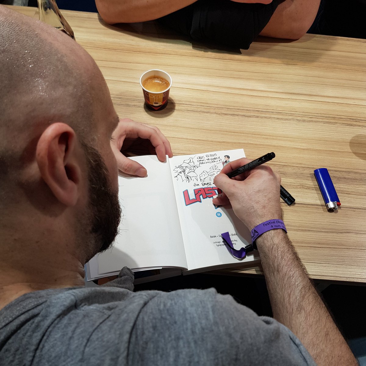 Bastien Vivès, Balak et Michael Sanlaville dedicacent LASTMAN pendant le