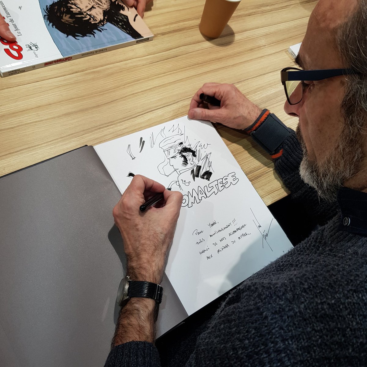 Que de talents sur notre stand ce matin ! Enki Bilal, Juan Dìaz Canales et Ruben Pellejero (Corto Maltese), Sensuke Yamada (Sengo), AJ Dungo (In Waves) et, Bastien Vivès, Sanlaville et Balak pour Lastman !