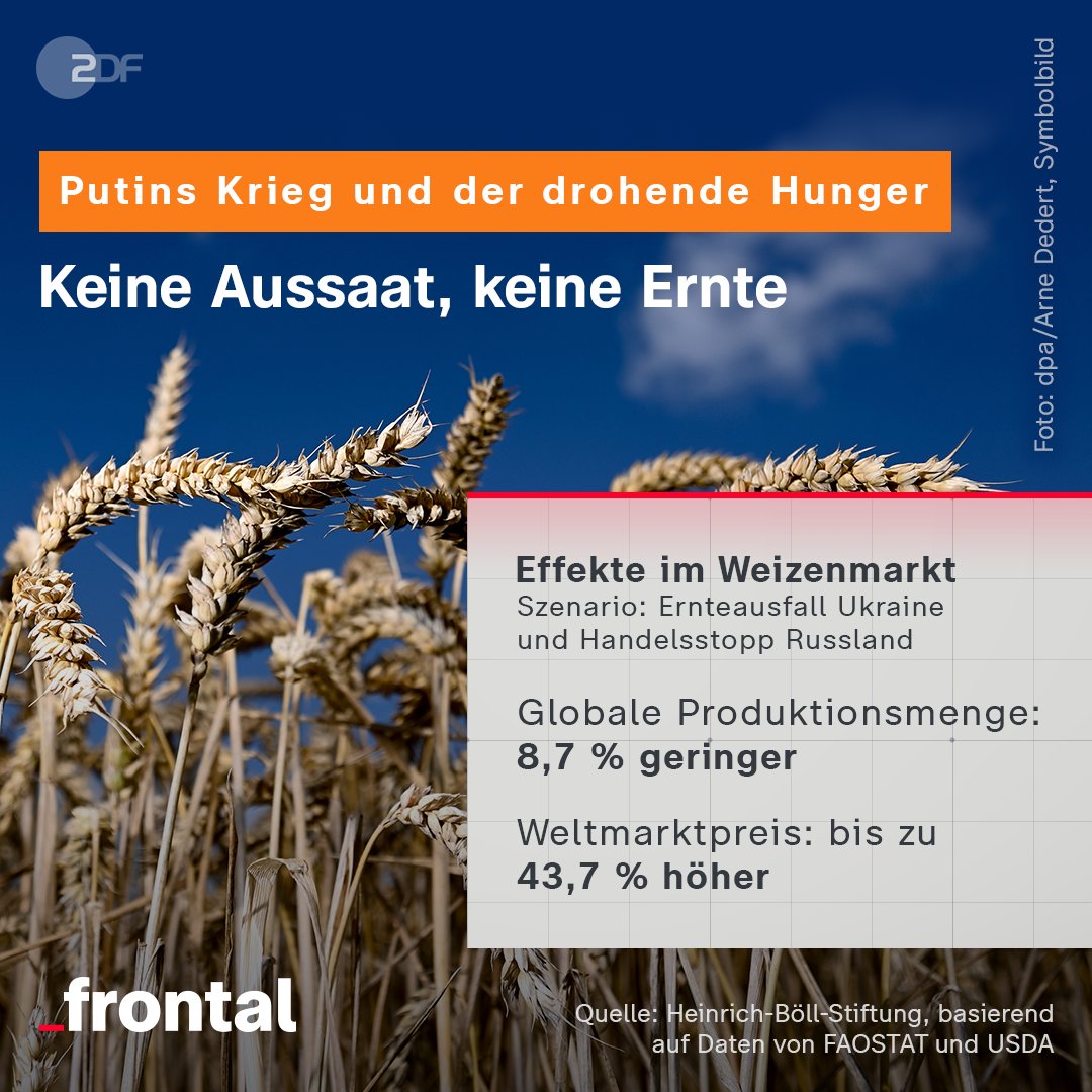 #Ukraine ist die Kornkammer Europas – und ist gemeinsam mit Russland ein wichtiger Exporteur von Getreide. Fallen die Lieferungen aus, steigen die Weltmarktpreise, und es droht#Hungersnot in den ärmsten Regionen der Welt. Mehr bei#ZDFfrontal, 21 Uhr im@ZDF.@boell_stiftungpic.twitter.com/HmX4JbZPu0