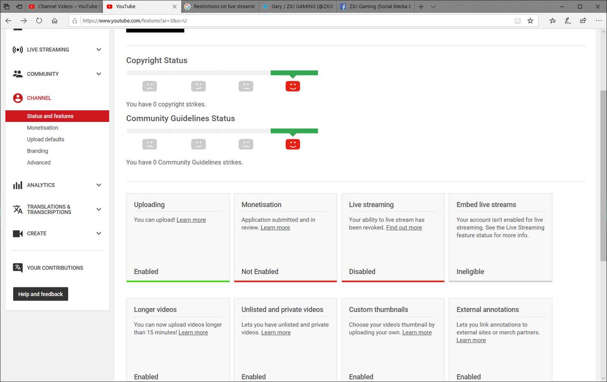@TeamYouTube I need to ask why have I got live streams disabled please as you can see iv got no strikes of any kind on my channel and I do live streams from my desktoppic.twitter.com/vM0dr2CFVP