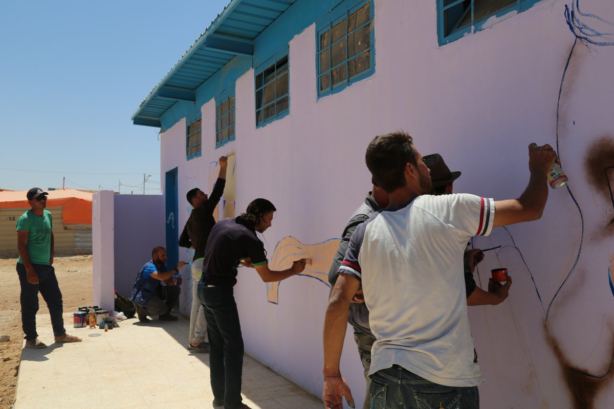 Youth volunteers in @ZaatariCamp transform old communal kitchens into community spaces and mark #WorldRefugeeDaypic.twitter.com/ifKIIu4rwm