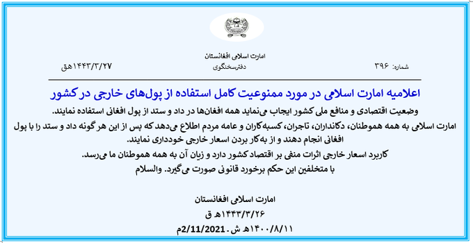 زنده باد امارت اسلامی بلی بسیار گامی خوبی هست و این از جمله نشانههای مقتدر، متکی با خود و عدم وابسته به دیگر کشور های خارجی را ثابت میکند پاینده باد امارت اسلامی، شرمنده و ذلیل باد دشمنان وطن