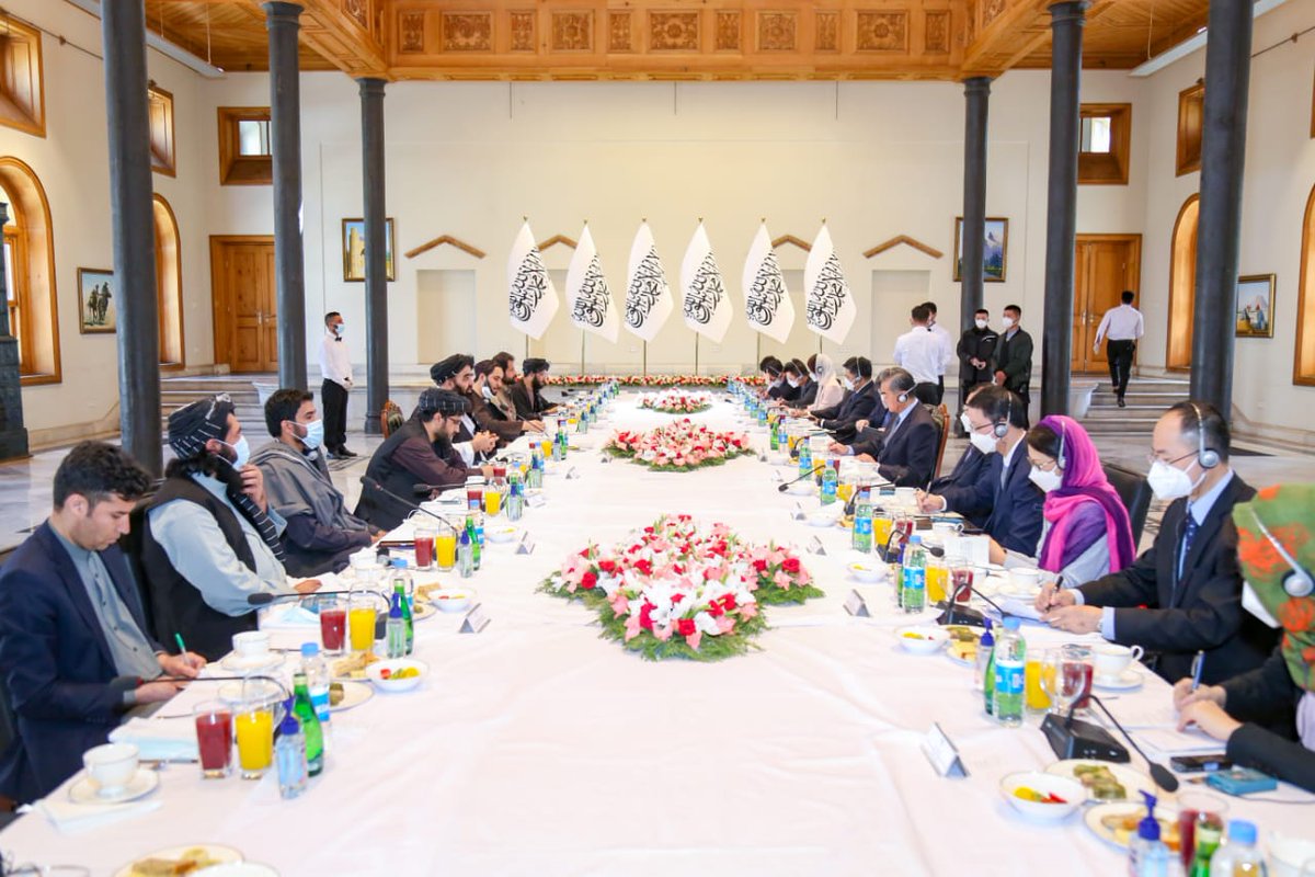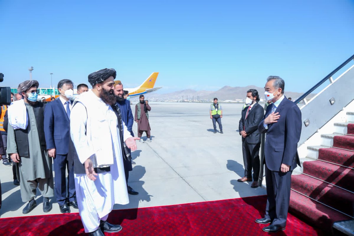نن د چین هیواد د باندنیو چارو وزیر ښاغلی وانګ يي په یو ځانګړي سفر کابل ته راغی او د افغانستان د بهرنیو چارو وزیر مولوي امیر خان متقي يې هرکلی وکړ. دواړو سیالانو د بهرنیو چارو وزارت په ستوري ماڼۍ کي غونډه ترسره کړه چې پکې په سیاسي، اقتصادي، ټرانیزيټي، هوايي دهلیز،pic.twitter.com/qTD1nF6Cjk