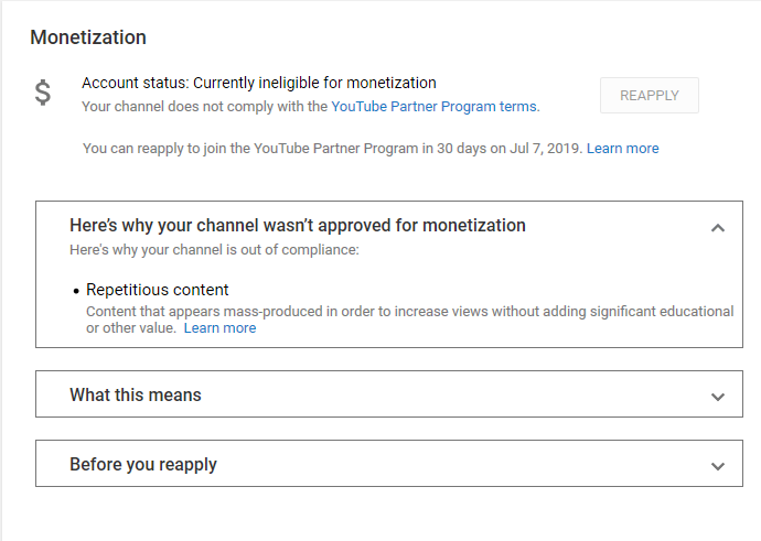 Have you tried asking on the Creator Insider channel about what would qualify as repetitious content and how a channel gets flagged for it?