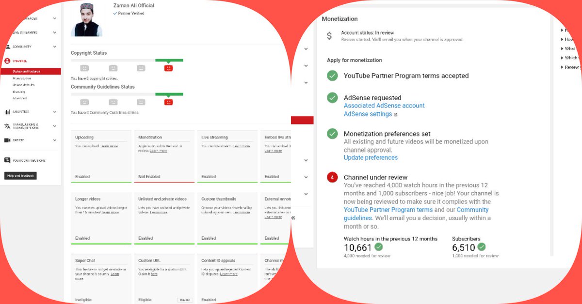 @TeamYouTube Hi Dear Team YouTube ! I am Completed All the requirements 4k Hours and 1k Subscribers.But my channel is still in under review. It's my humble request please enable my monetization. I Hope You will give me reply. Channel Link: https://www.youtube.com/channel/UC15QBEA-Kmsh5UPIjJhXoig …pic.twitter.com/GsDHfBoDbB
