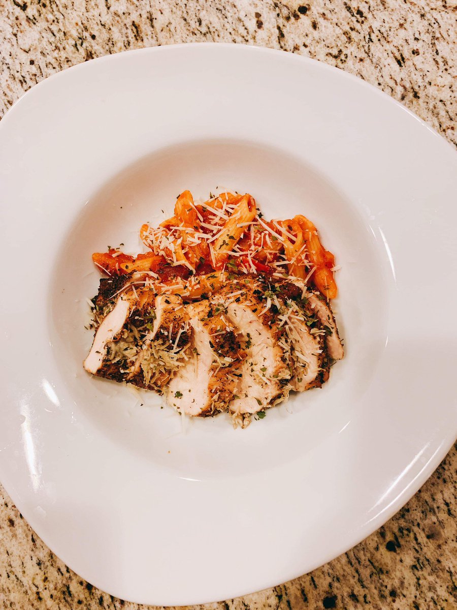 Dinner tonight! My wife made some penne with homemade sauce and I smoked some chicken. #teamwork #smoker #pasta #italianamerican #chickenpic.twitter.com/PG840jvfB2