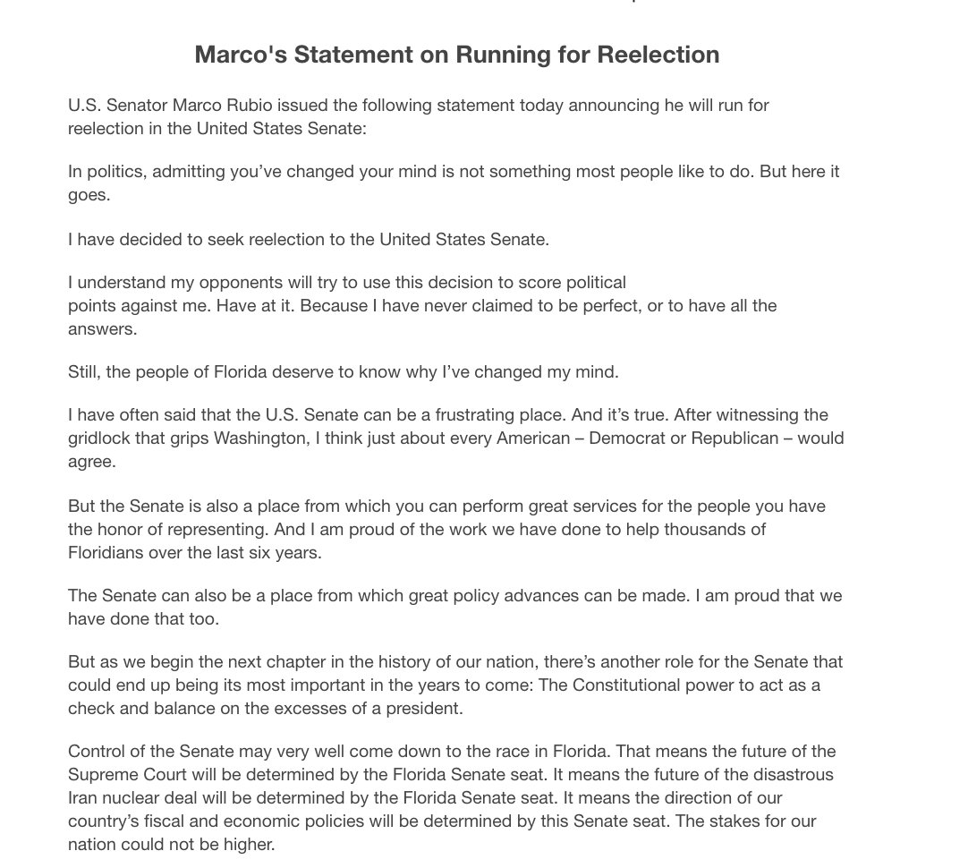 Marco had many job offers making bucko bucks. He is giving up the big $ for the good of the country. Honorable indeed.