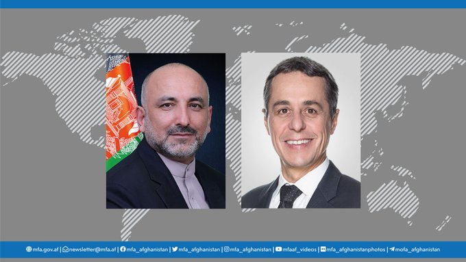 د بهرنیو چارو سرپرست وزیر محمد حنیف اتمر د سویس د فډرالي شورا غړي او د بهرنیو چارو وزیر ایګنازیو کاسیس سره د سیاسي، پراختیایي او بشردوستانه همکاریو په ګډون پر دوه اړخیزه موضوعاتو باندې ټیلیفوني خبرې کړي دي.pic.twitter.com/jlNNDfrucj