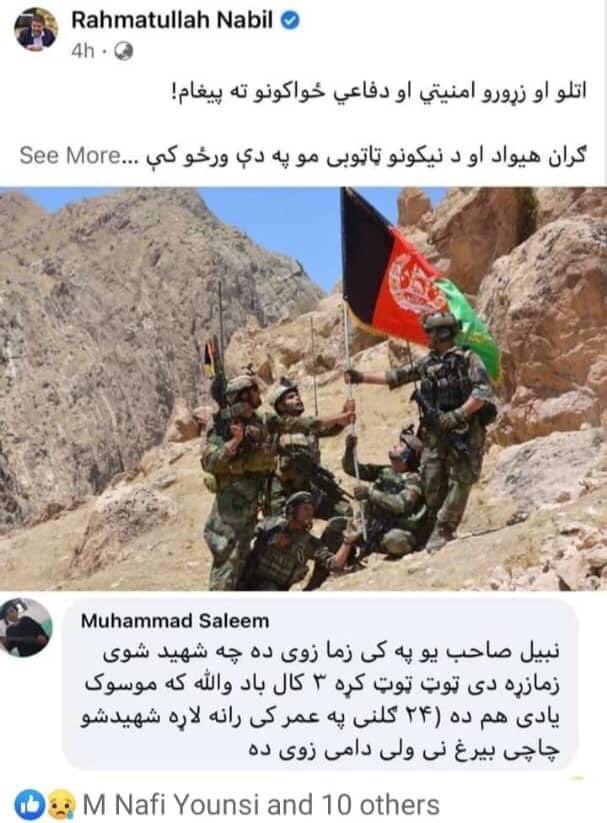 د رحمت الله نبیل پر یوه ټویټ د یوه سرتېري د پلار کمینټ 😢😢😢😭😭😢😢pic.twitter.com/jhiccxqgJ9