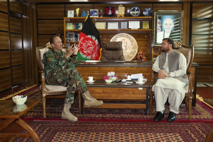 د ننګرهار والي ښاغلي @ZiaulhaqAmarkhi د ۲۰۱ سیلاب قول اردو قوماندان برید جنرال عبدالجبار وفا په مشرۍ مسؤلینو سره د لیدنې پر مهال په حصارک او شیرزادو ولسوالیو کې د ملي امنیتي قواو د لاسته راوړنو څخه مننه وکړه او امنیت په موخه د لا زیاتو هڅو غوښتنه وکړه.pic.twitter.com/afsVwwfbf2