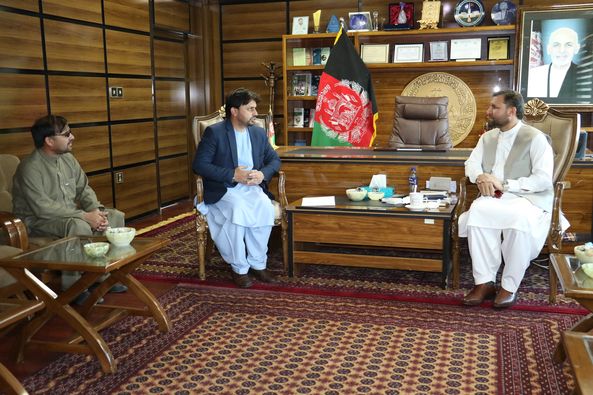 د ننګرهار والي ښاغلي @ZiaulhaqAmarkhi د کانونو وزارت استازي محب الله کمین سره د لیدنې پر مهال ټینګار وکړ چې په پچیراګام او شیرزادو ولسوالیو کې هم یاده پروسې ته اجازه ورکړل شي، ترڅو کاري فرصتونو برابریدو ترڅنګ د کاروباریانو ستونزه هم حل شي.pic.twitter.com/xT07TifXRK