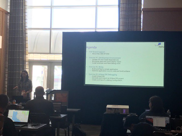 Thank you to Maureen Helm and @NXP for the hands-on demo at the @ZephyrIoT Summit! @linuxfoundation #ossummit #lfelc #ZephyrIoTpic.twitter.com/JgUwjg9I2E