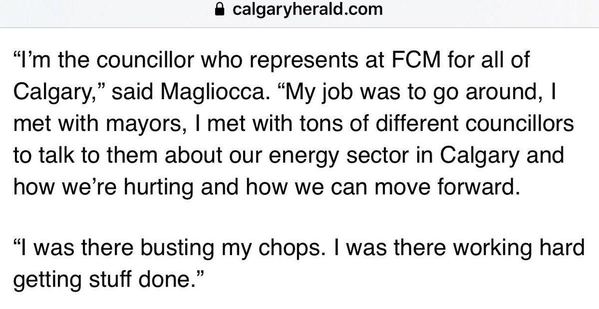 “My job was to go around...I met with tons of different councillors to talk to them about our energy sector in Calgary and how we’re hurting and how we can move forward.” Eg. By expensing a $238 steak-and-wine dinner with the mayor of Brooks to Calgary’s “hurting” taxpayers.pic.twitter.com/jXGXEBFCJt