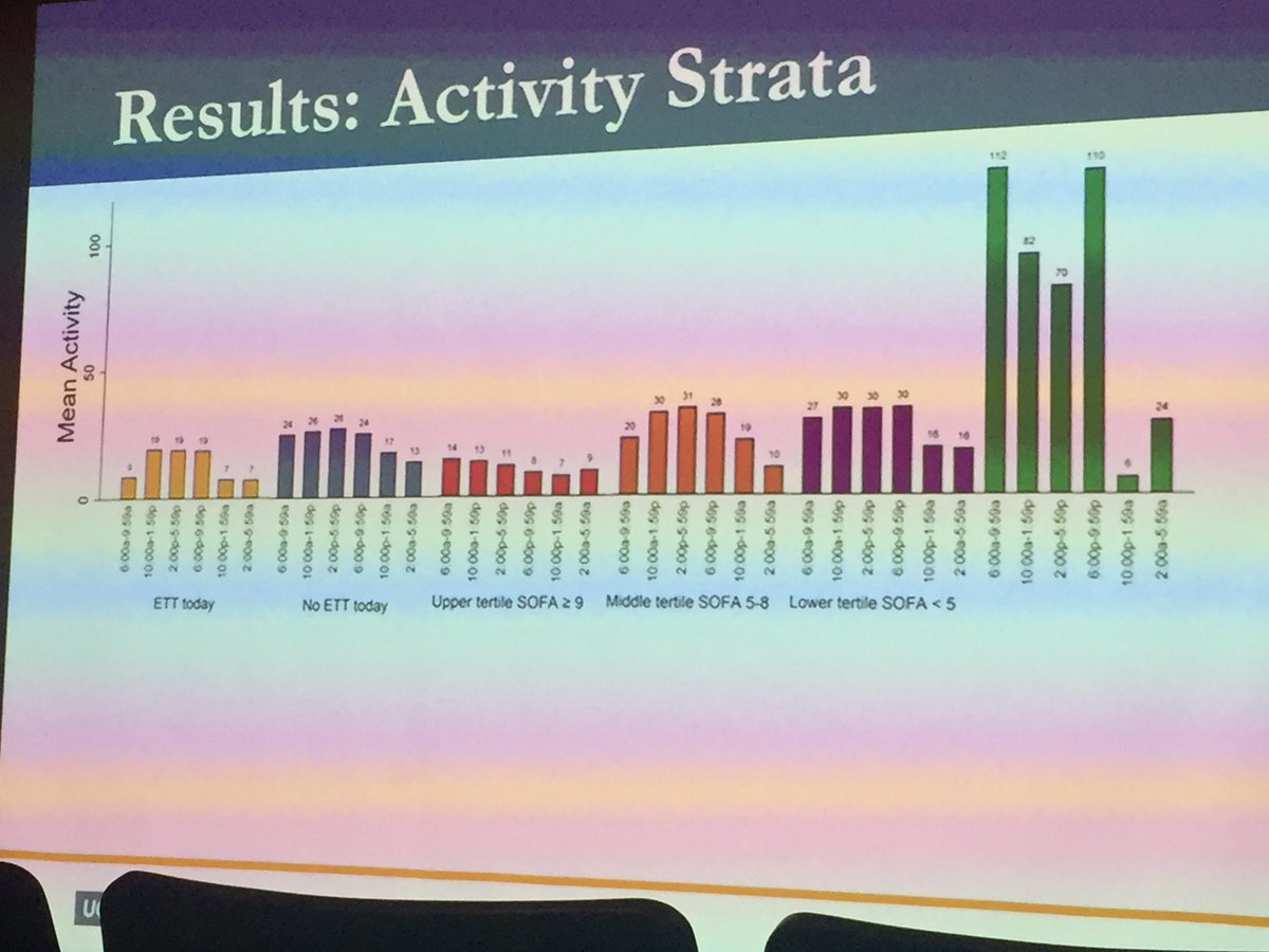 ICU pts are almost as inactive as sleeping healthy controls (on right)! Inactivity proportional to SOFA score