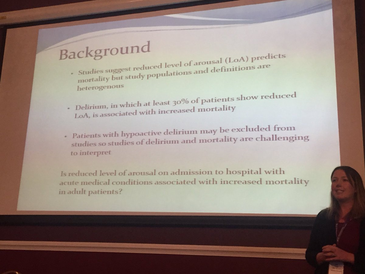 Reduced level of arousal & increased mortality in acute medical admissions. Important work from Dr Amy Todd & Dr Sam Blackley
