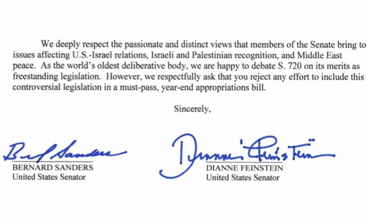@SenSanders and@SenFeinstein ask not to sneak the Israel Anti-Boycott Act into the end-of-year omnibus spending bill. They cite ACLU legal victories in quashing anti-boycott laws in Arizona & Kansas: “The courts’ reasoning in both those cases applies with equal force to S.720."pic.twitter.com/3SvrzGCghw