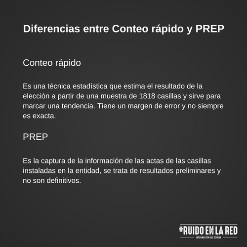 El PREP significa el conteo de actas, mientras que el conteo rápido es una muestra estadística de casillas. Son diferentes.