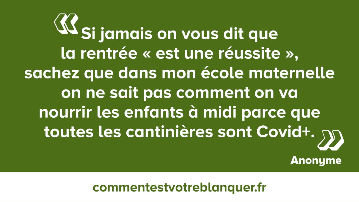 #CommentEstVotreBlanquer pour cette rentrée ? Gouvernement incompétent, ministre incapable qui sème la pagaille, protocole sanitaire inadapté : dites-nous tout ! Pour plus de témoignages et pour envoyer le vôtre : https://commentestvotreblanquer.fr/ pic.twitter.com/fZL6Atuzyg