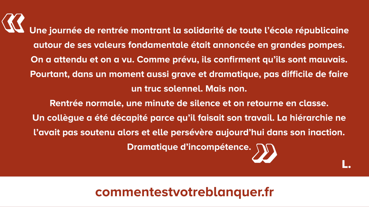 #CEVB Pour apporter votre témoignage ou en consulter, rendez-vous surhttps://commentestvotreblanquer.fr/Näytä tämä ketjuKiitos. Käytämme tätä aikajanasi parantamiseen. KumoaKumoa -