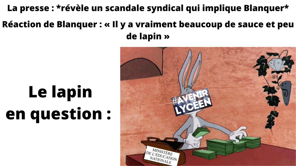 #Blanquer est un peu salée... comme l'addition pour le contribuable.#BlanquerGatehttps://www.liberation.fr/france/2020/11/20/avenir-lyceen-un-syndicat-modele-modele-pour-blanquer_1806306 …Kiitos. Käytämme tätä aikajanasi parantamiseen. KumoaKumoa -