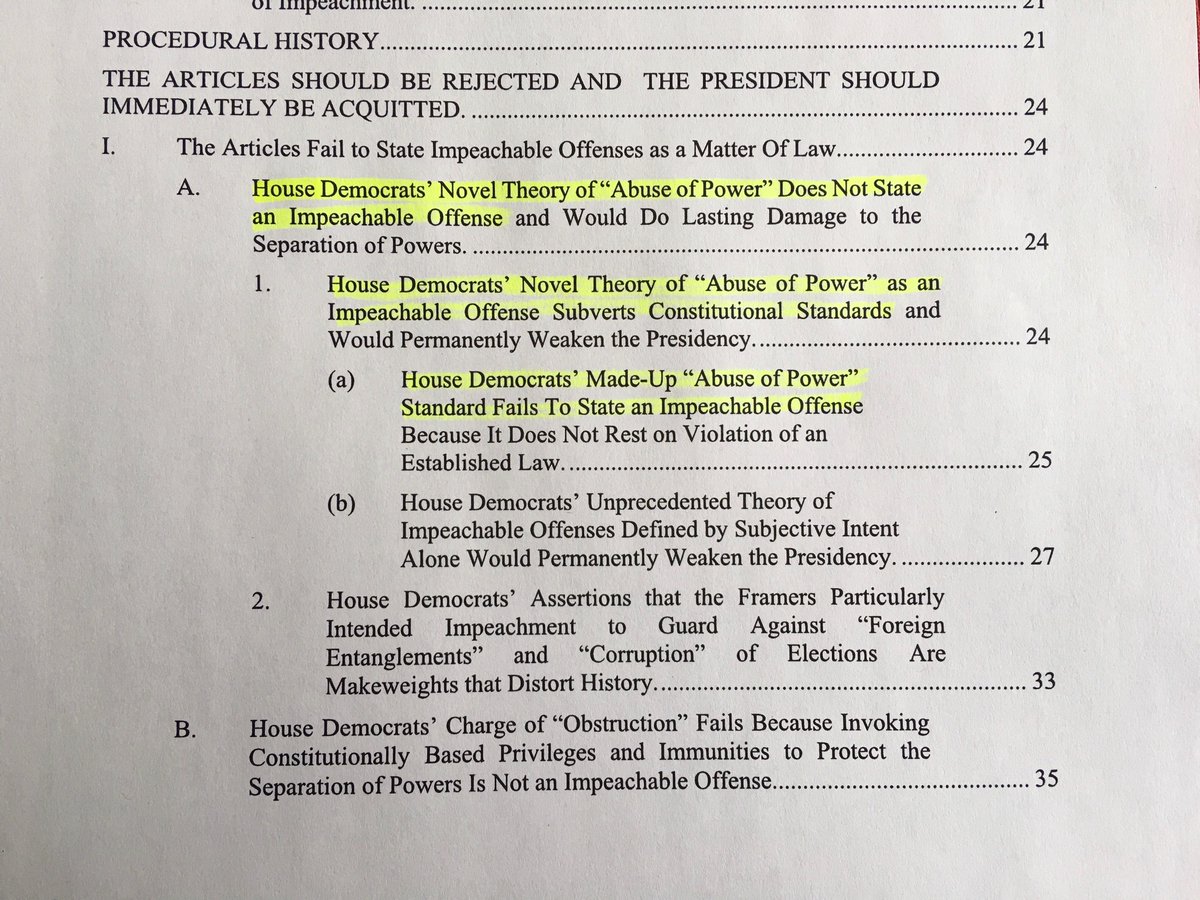 When Donald Trump's lawyers stand before the Senate of the United States and maintain that abuse of power is a "novel theory" of impeachment, which is "made-up" and "does not state an impeachable offense," their arguments should be met with skepticism.pic.twitter.com/Le7Y2vPsf4