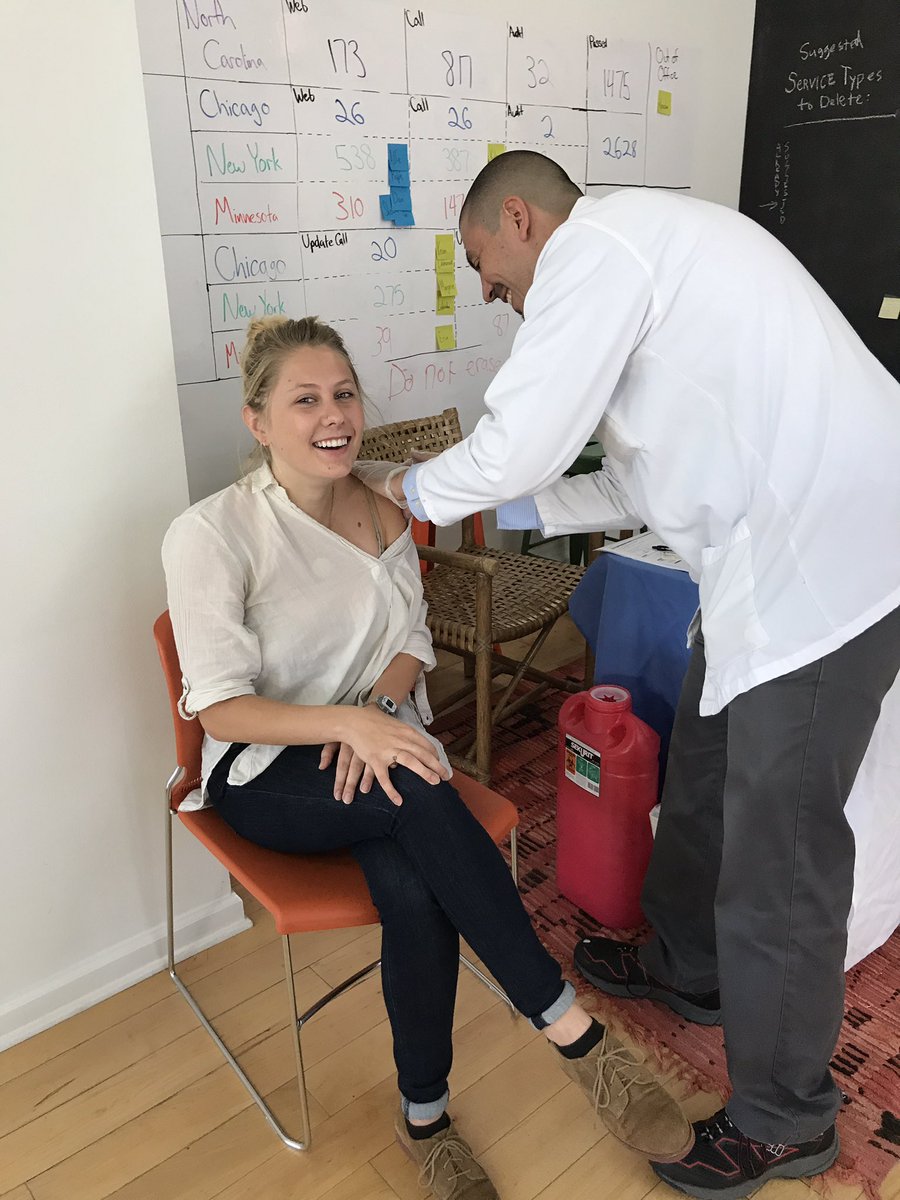 We were grateful to have #flushots offered at the office today! Our new product development associate, Alicia, was all smiles #flufighterpic.twitter.com/8AajC06tCd