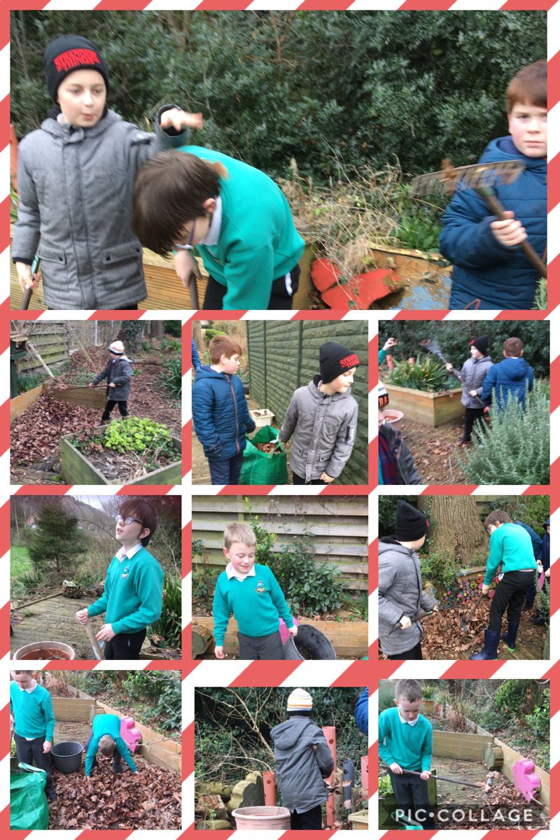 Breezy afternoon for Dosbarth Siabod. They all worked hard clearing away the leaves at our sensory garden