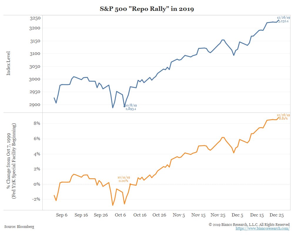 "The Fed insists that their repo support operations are “not QE” and therefore are not influencing financial markets. 20 years ago the Fed did something similar and it seemed to have a profound effect on financial markets." -